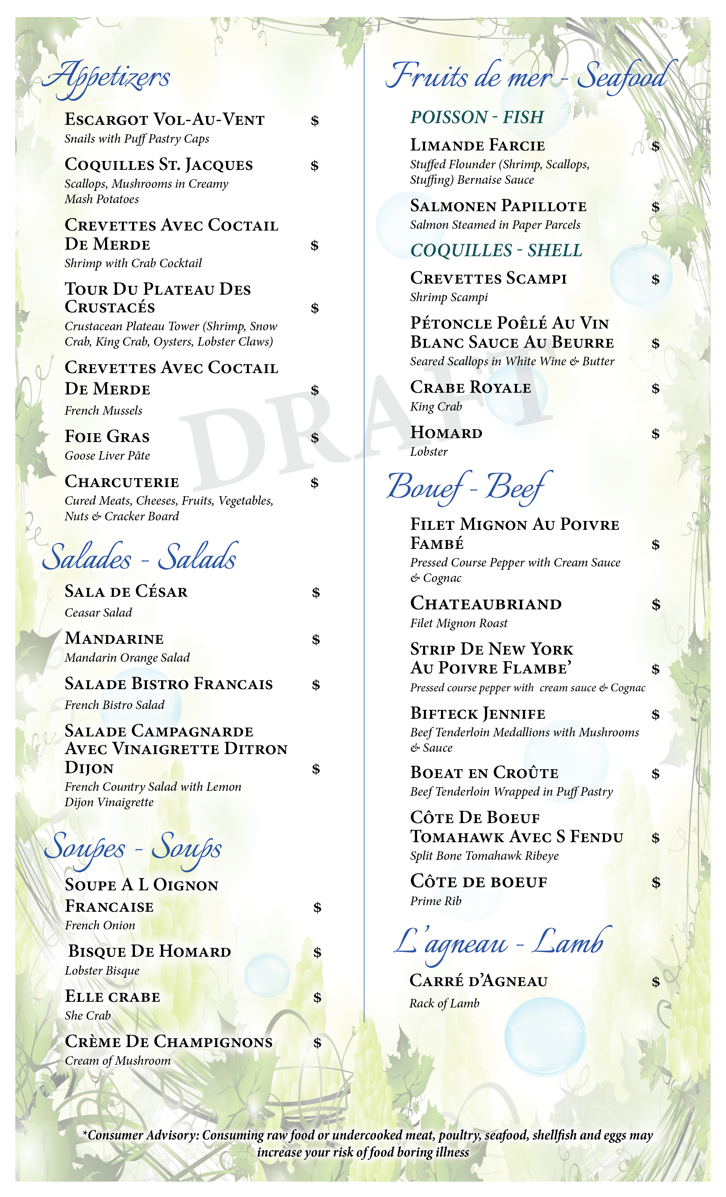 The Shape of Water future menu - French Fusion